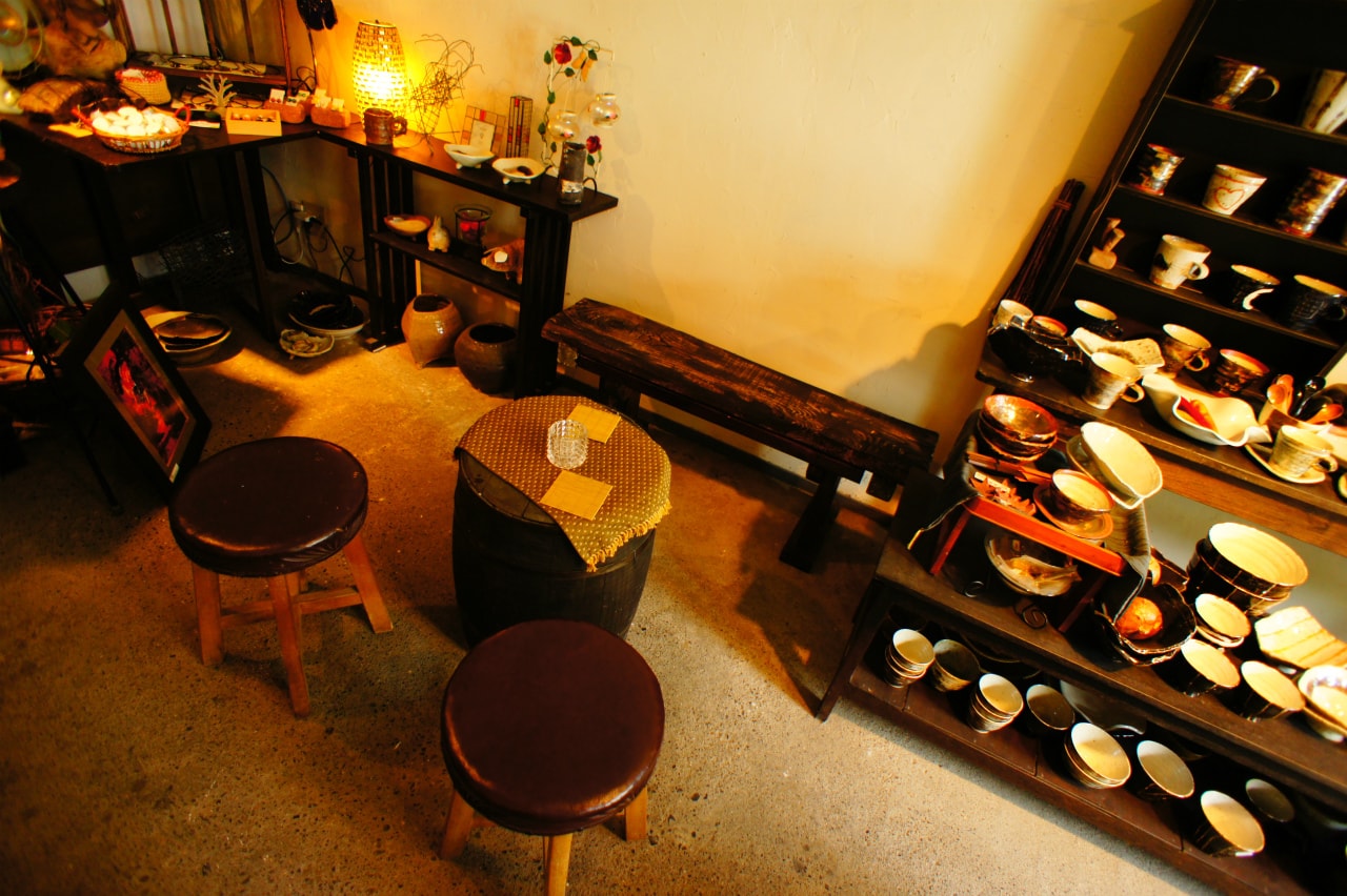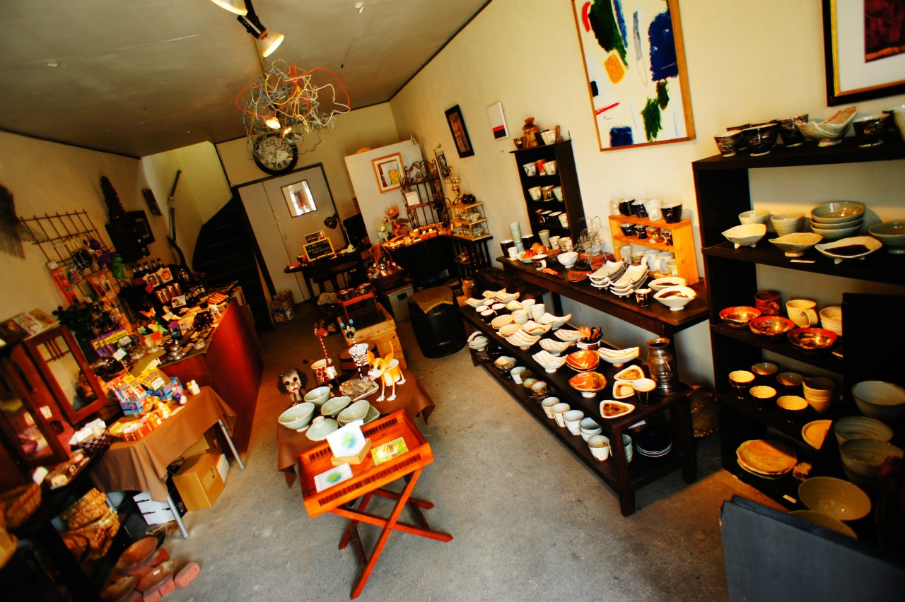1Fのショップではオリジナル陶器/スタッフセレクト輸入雑貨の販売。